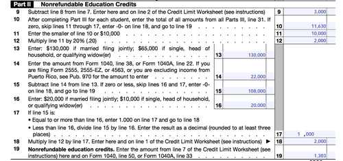 April 25, 2020 - Part IV of the Worksheet is Education Expenses. For American Opportunity Credit, Lifetime Learning Credit, Tuition and Fees Deductions, it only considered the first two items in the above expense list, and the total is $20,561. Then it subtracted $10,561 and left only $10,000 as the "adjusted qualified ...
