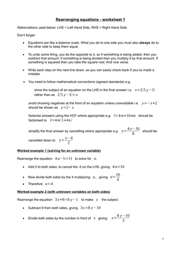 Rearranging equations worksheet answers