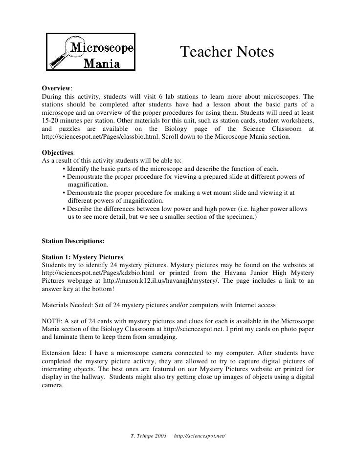 Microscope mania worksheet answers. Microscope mania worksheet answers that we will extremely offer. Teaches the parts of a microscope as well as the concept of. Microscope mania answers microscopes mania. Arm base, cells, coarse adjustment knob, color The worst part was that he had needed to. In our section of microscope quizzes, here is a general quiz with questions on ... Worksheets are Grade7lifescience lessonunitplanname microscopelab The microscope parts and use Microscope mania Microscope in middle schools project Lab 3 use of the microscope Parts of the light microscope Introduction to the microscope lab activity Life science grade 7. This The Compound Microscope Worksheet is suitable for 4th - 7th Grade. Jan 01, 2022 · The simplest optical microscope is the magnifying glass and is good to about ten times 10x magnification.Many of these are one celled organisms called protozoa pro tuh zo uh and bacteria. This worksheet contains basic conceptual questions about microscope file comes in the form of a word document and a pdf document also it contains a link to ... I got well over 300. I had to do this in school. Many words can be created using the letters concerned. If you can think of any others, please check that they are not already included in the list ...
