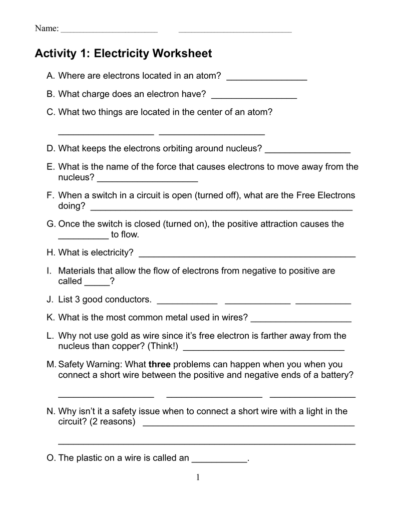 Simple Circuits Worksheet - Basic Electricity Take the Simple Circuits (Basic Electricity) worksheet. These questions & answers will help you master the topic! Simple Circuits. Basic Electricity. PDF Version. This is another opportunity to review the meanings of "open" and "closed" with regard to switches. Electricity Review | Interactive Worksheet by Kristina Tharp | Wizer.me Electricity Review Worksheet. March 31, 2020. Watch the video on static electricity to answer the questions below. Write instructions here... Static Electricity Review Worksheet Answers | Free Printables... Free Printables Worksheet. Static Electricity Review Worksheet Answers. Electricity Review Worksheet Answers Free Download Electricity review worksheet answers (STACKOVERFLOWS.CO) - Click on the website link below and type in the code (also below) 2. Quickly access your most used files and your custom generated worksheets! Please login to your account or become a member and join. The battery sends energy...