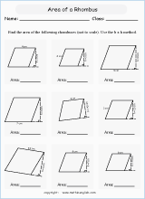 Area of rhombus worksheet