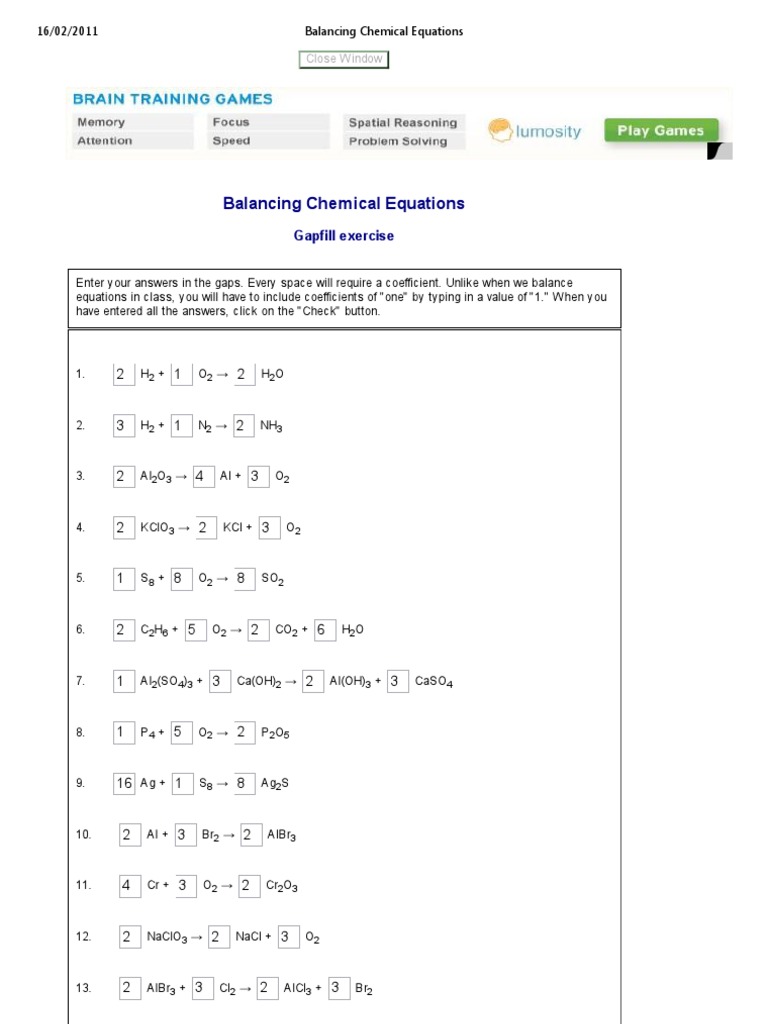Top Notch Balancing Chemical Equations Worksheet With Answers Grade 10 ... Download file pdf balancing chemical equations worksheets answers. Balancing equations worksheet and key 1. Balancing an unbalanced equation is mostly a matter of making certain mass and charge are balanced on the reactants and products side of the reaction arrow. Rather than reading a good book with a cup of coffee in the. 2Na Cl 2 2NaCl 3 ...