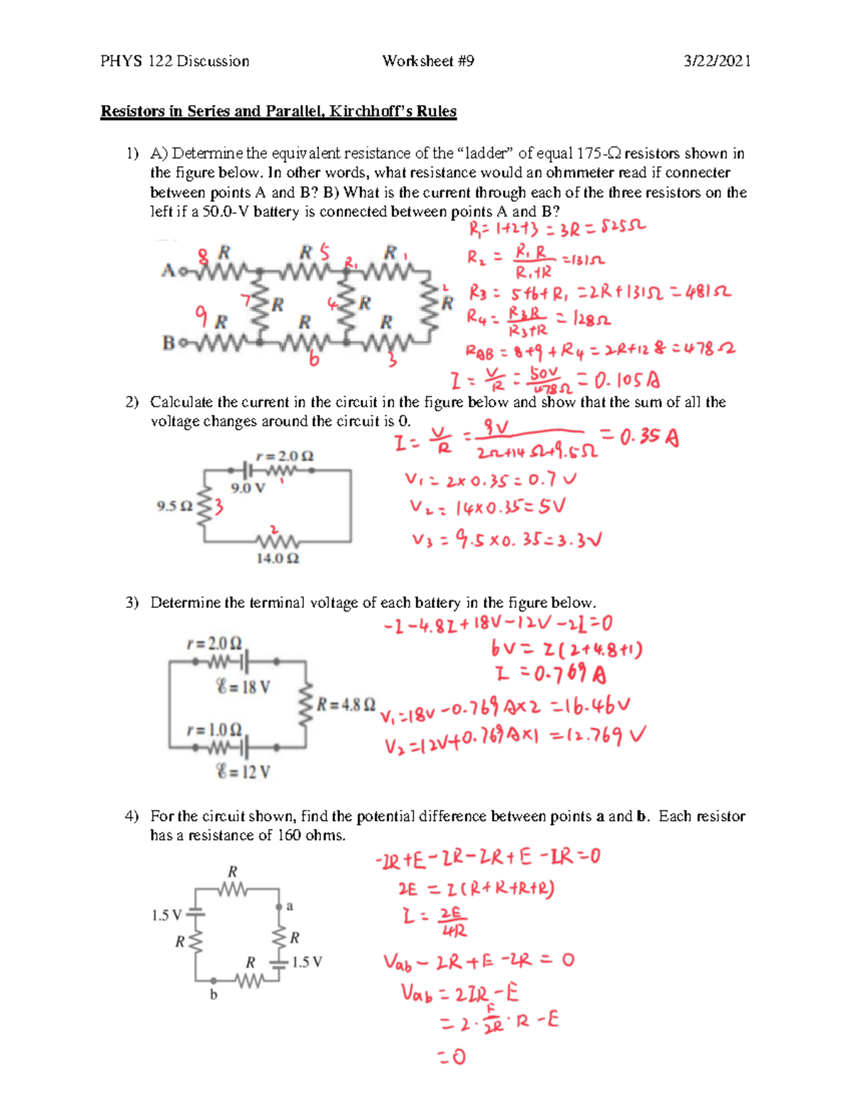 Equivalent resistance worksheet answers