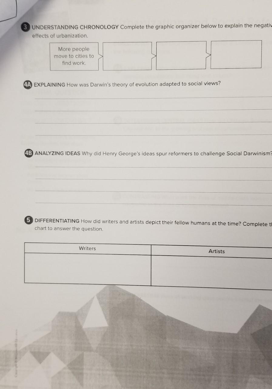 PDF The Challenges of Urbanization 266 CHAPTER 7 MAIN IDEA 2. TAKING NOTES Re-create the spider map below on your paper. List urban problems on the vertical lines. Fill in details about attempts that were made to solve each problem. CRITICAL THINKING 3. ANALYZING MOTIVES Why did immigrants tend to group together in cities? 4. EVALUATING Which solution (or attempted solution) to ...