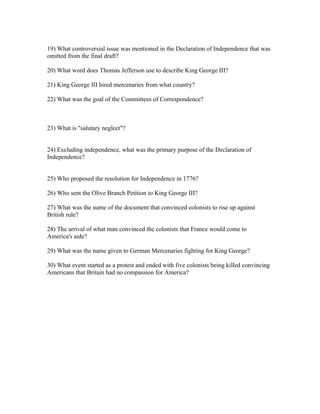 Magna Carta: Muse and Mentor - Library of Congress Nov 07, 2014 · Drafted by Benjamin Franklin (1706–1790), George Bryan (1731–1791), James Cannon (1740–1782) and others during the summer of 1776, Pennsylvania’s constitution borrowed language from the Stamp Act Congress, the First Continental Congress, and the Declaration of Independence. Question Sheet for the Declaration Activity (with answers) - PBS 6. Next, look at the list of grievances that Jefferson lists as reasons that the King has violated the natural rights of the colonists. Below, list the three grievances that you feel are the worst violations. Explain why you believe them to be important. Also, note that Jefferson points to King George III in his list of grievances despite Grievances In Declaration Of Independence Teaching Resources Results 1 - 24 of 300 ... Browse grievances in declaration of independence resources on Teachers Pay Teachers, a marketplace trusted by millions of teachers for ... Lesson 4: The Declaration of Independence Answer Key ... - AWS In this section of the Declaration, the authors listed grievances or complaints against King George. III of Great Britain and his government. The history of the ...